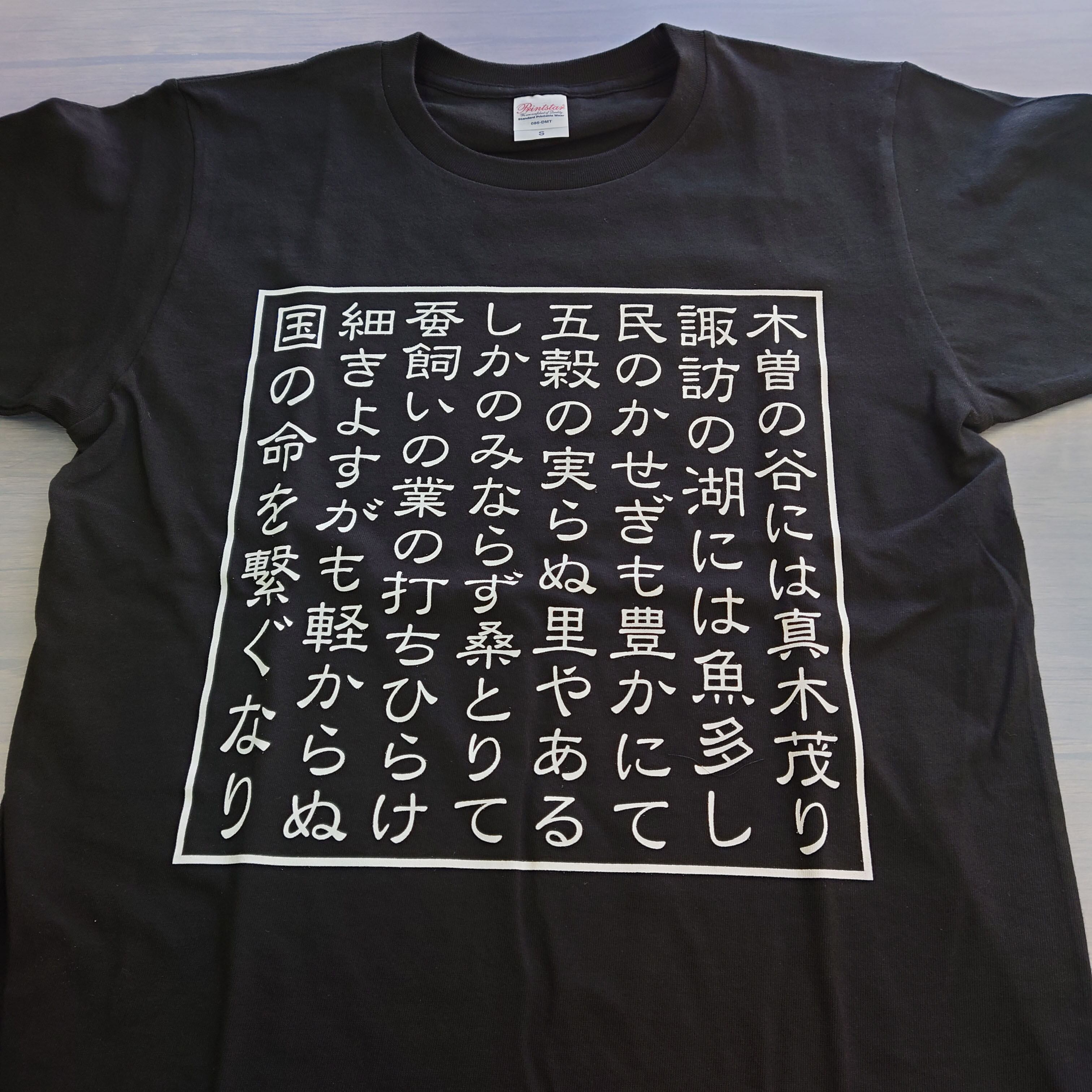 長野県・県歌「信濃の国」の歌詞を大きくプリントしたTシャツです