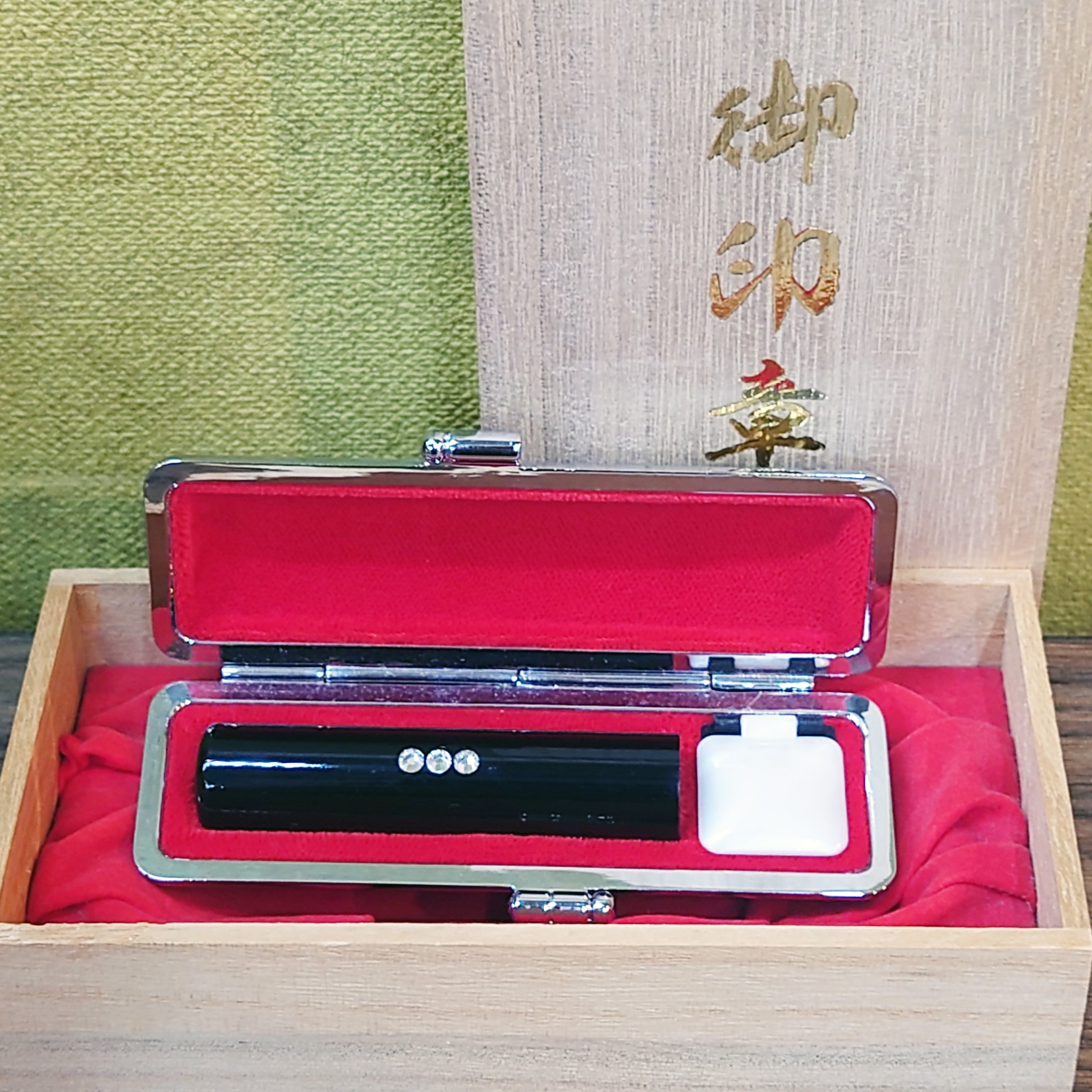 お名前で創る実印兼銀行印・クリスタルオーナメント付黒水牛13.5mm丸