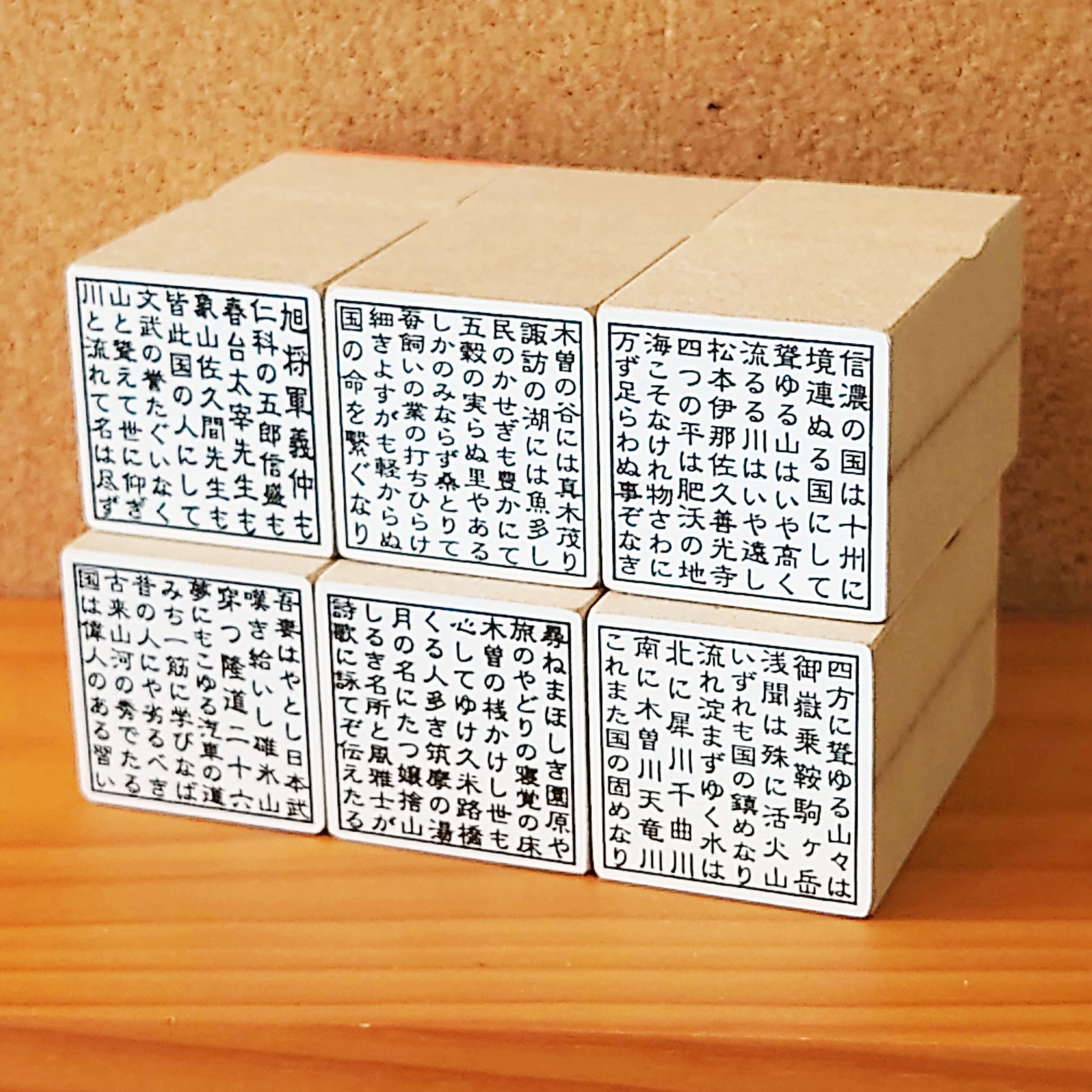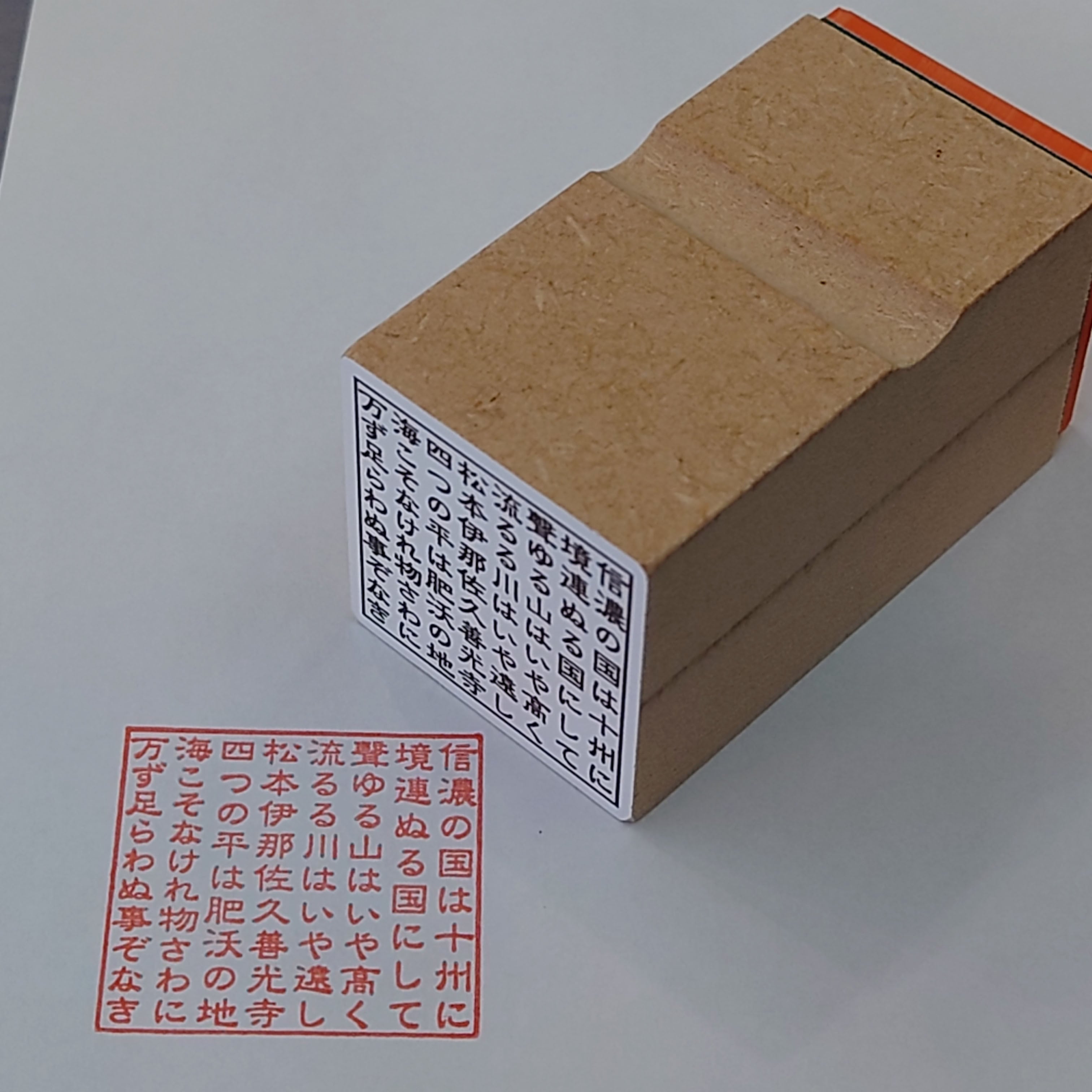 1辺3cmの正方形の中に長野県歌「信濃の国」の歌詞を入れたゴム印です